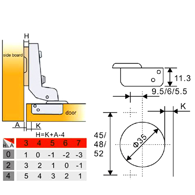 Diameter of hinge cap: 35mm