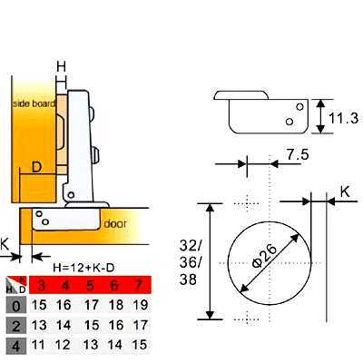 >CONCEALED HINGES>Φ26 ONE WAY>HB50B